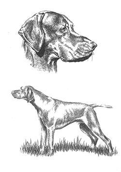 UTILISATION: A versatile gun dog that must be able to work in the field, forest and water, having the following typical qualities: an excellent nose, firmness on the point, excellent retrieves and determination to remain on the scent even when swimming, which he manifestly enjoys. He copes with difficult terrain as well as extreme weather conditions. As he is intended to be an efficient hunting dog, gun and game shyness, unwillingness to point and retrieve, as well as a dislike of water are undesirable. Because of his easy going nature and his adaptability, he can easily be kept as a companion dog in the house.